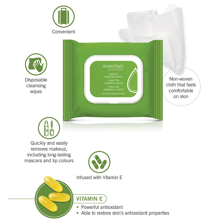 Artistry makeup remover wipes. Fast free shipping on many items. Enriched with vitamin e antioxidants chamomile and anti microbial green tea extract wipes combine fast and effective makeup removal and skincare in one. The art of beauty. Make offer essentials by artistry makeup removing wipes 25ct amway artistry makeup remover gel 100g 90.